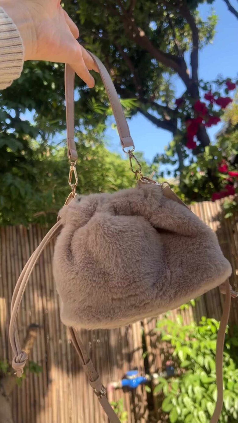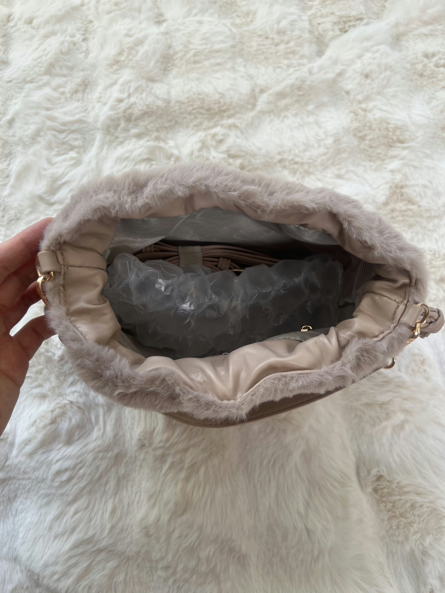 찬 바람이 부는 계절, 보기만 해도 따뜻해지는 페이크 퍼 복조리 버킷백을 소개합니다.